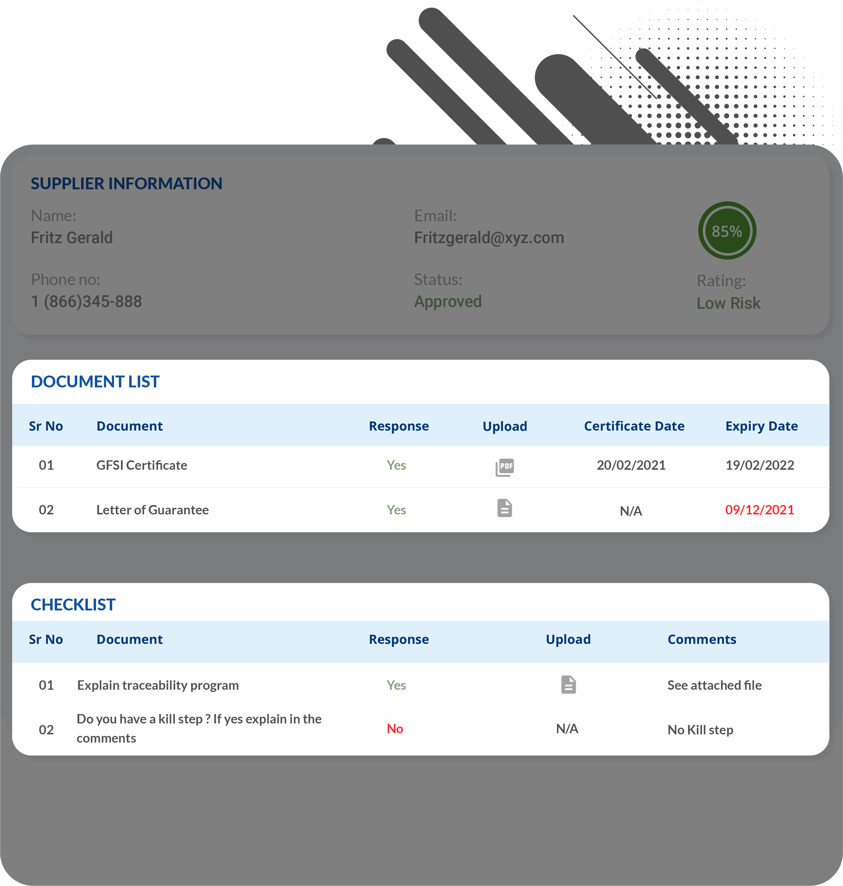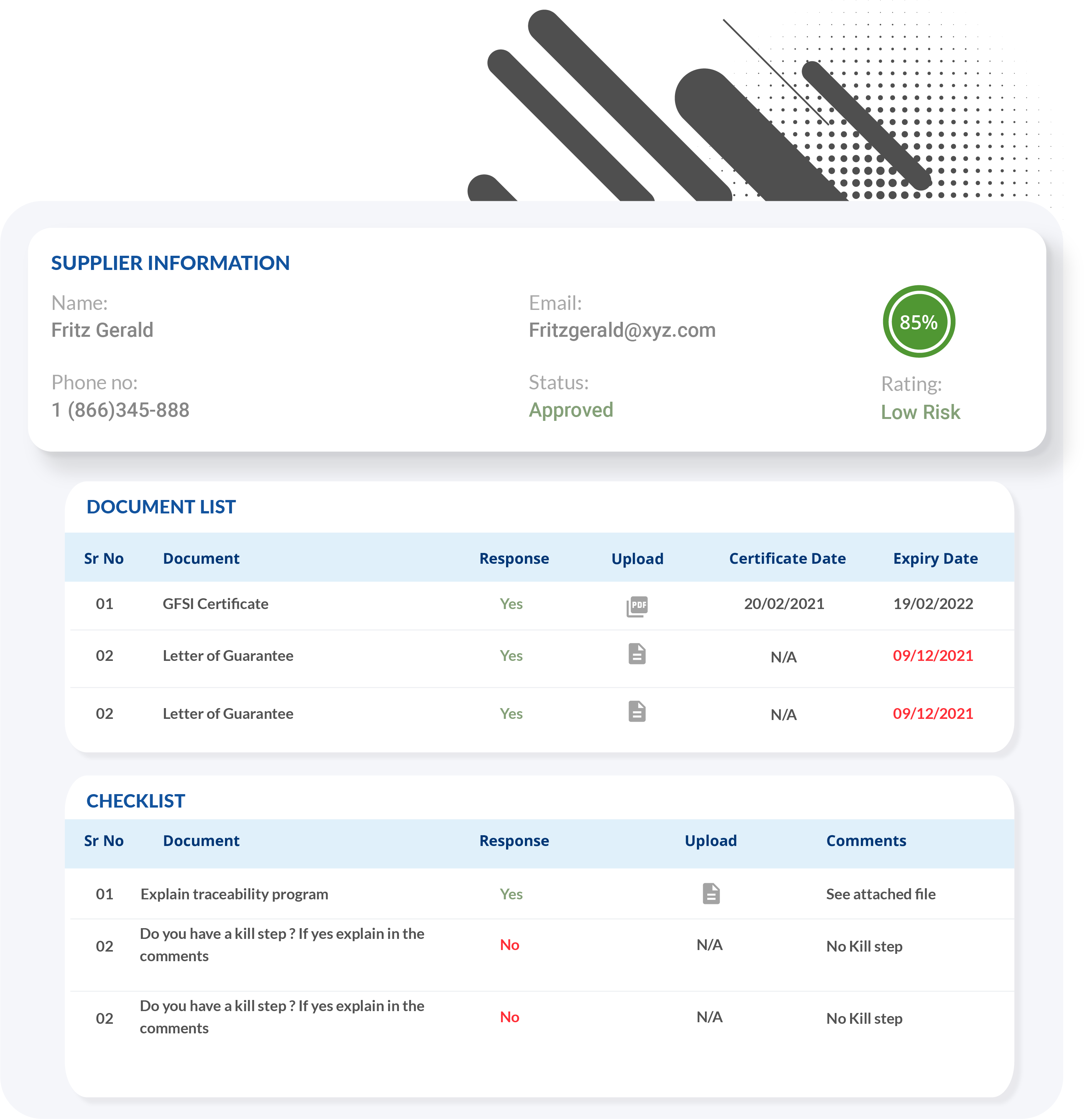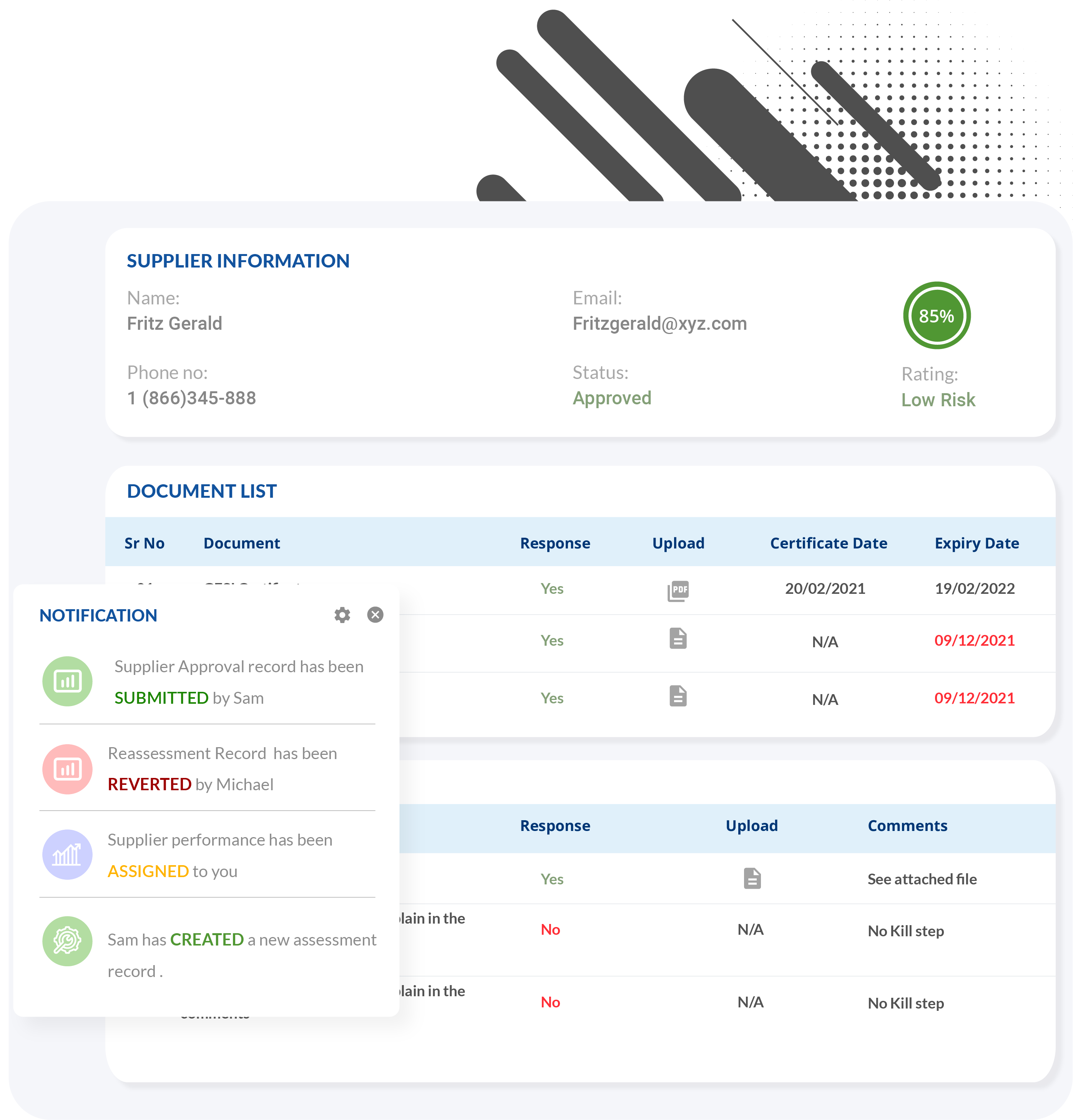 Our software streamlines the supplier approval and management process, and improves supplier compliance and performance, enhances supplier visibility and reduces the time and delays with the qualification/onboarding process.
